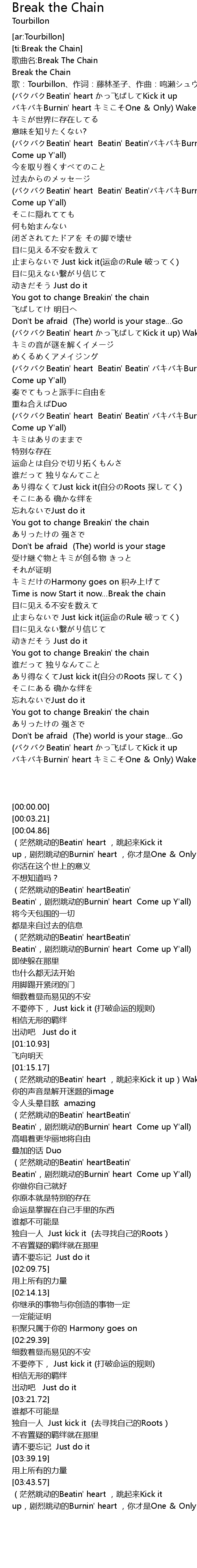 | [00:00.00] | gē qǔ míng: Break The Chain |