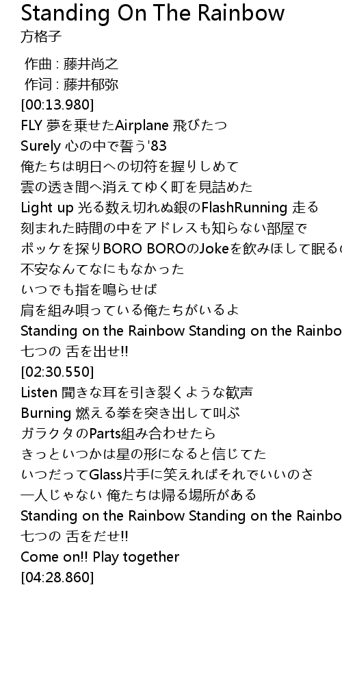 | [03:50.300] | Standing on the Rainbow Standing on the Rainbow |