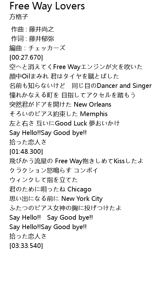 | [01:36.210] | Say Hello!!Say Good bye!! |