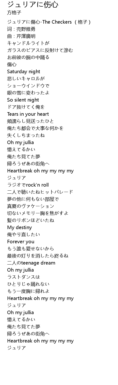 | [00:00.709] | ジュリアに傷心-The Checkers (格子) |