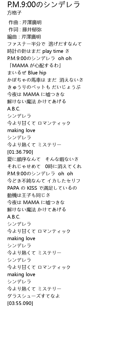 | [02:10.920] | P.M.9:00のシンデレラ oh oh |