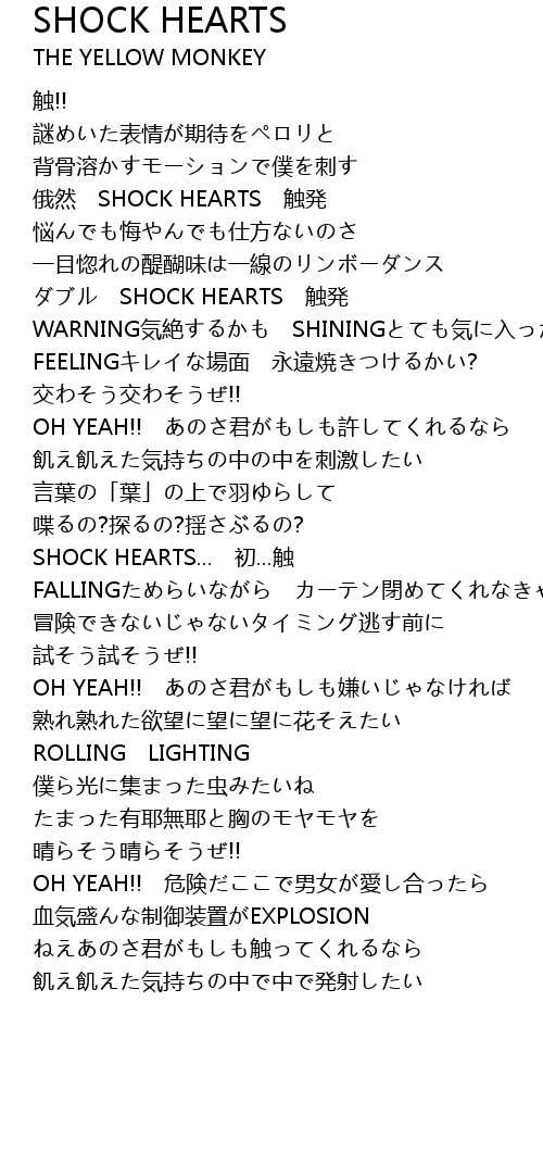 | [01:57.302] | SHOCK HEARTS... 初...触 |