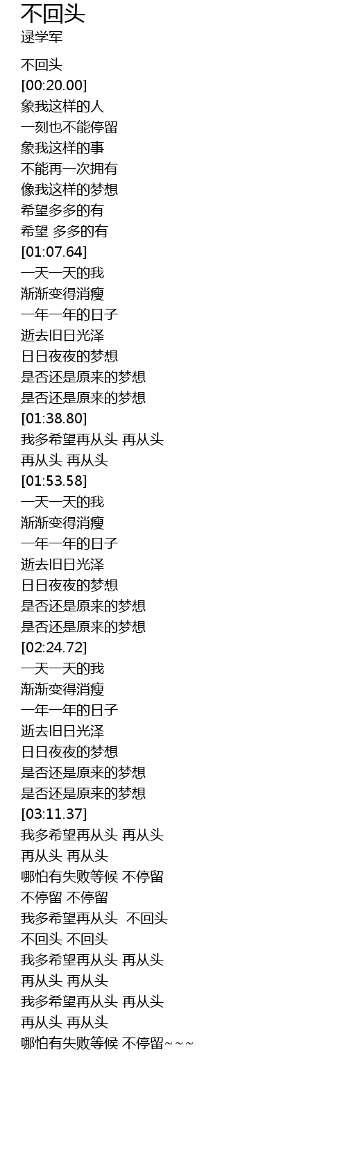 | [00:02.64] | 不回头 |