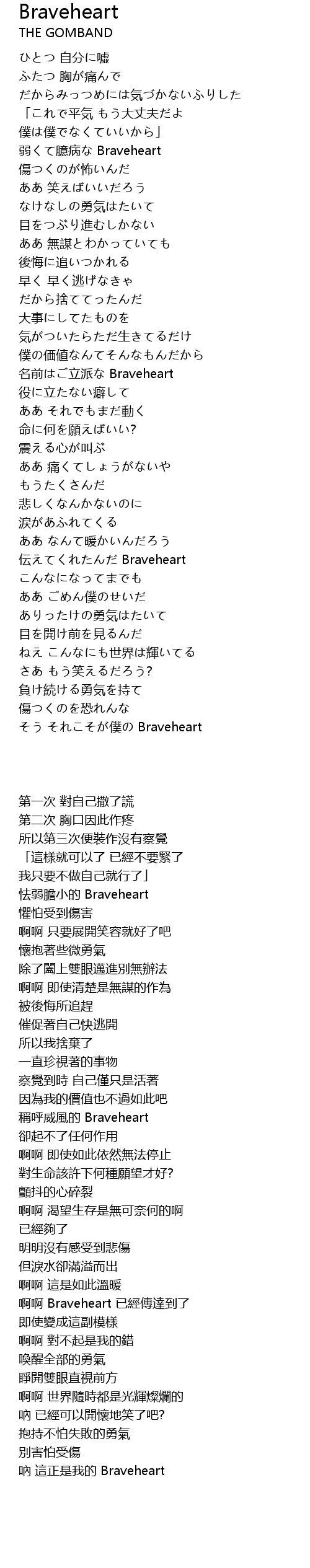 | [03:38.03] | そう それこそが僕の Braveheart |