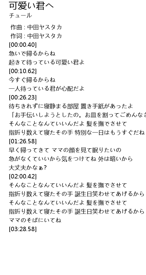 | [02:53.82] | 指折り数えて寝たその手 誕生日笑わせてあげるから |