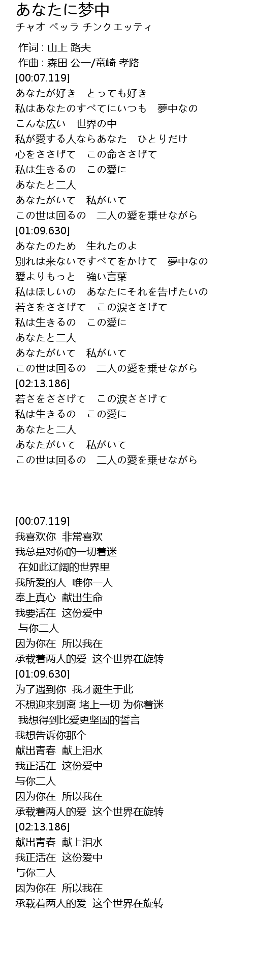 | [02:02.267] | この世は回るの 二人の愛を乗せながら |