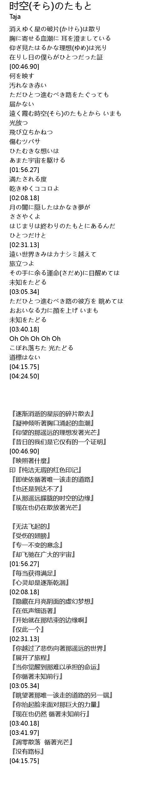 | [01:10.52] | 遠く霞む時空(そら)のたもとから いまも |