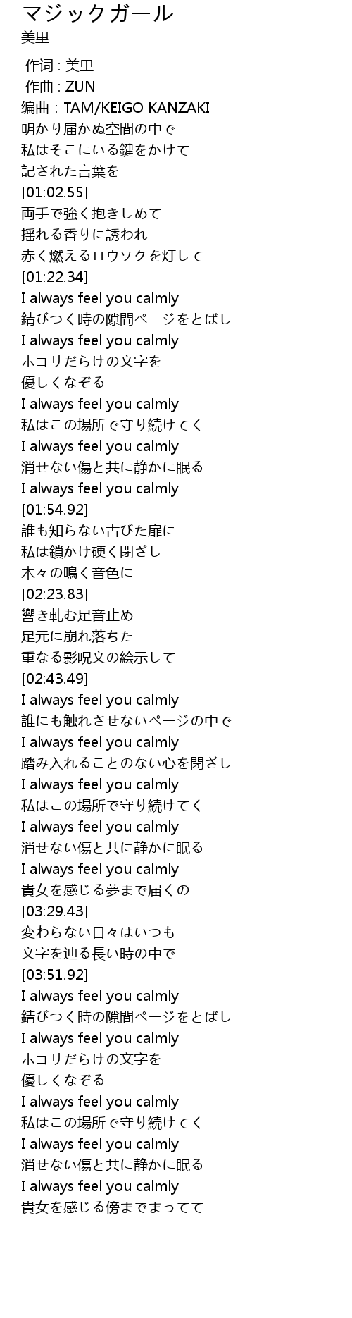 | [00:33.53] | biān qǔ: TAM KEIGO KANZAKI |
