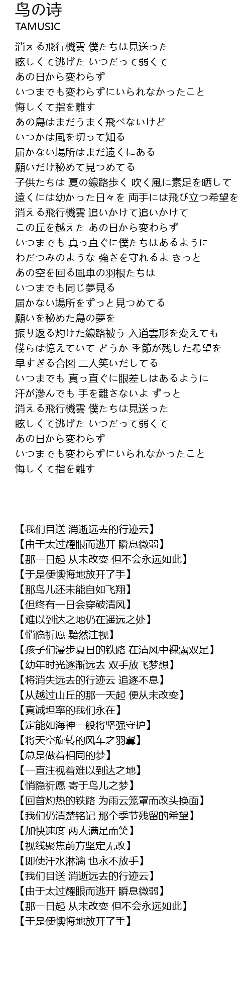 | Song | 鸟の诗 |