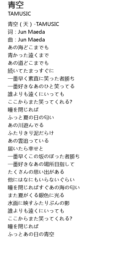 | [00:00.00] | 青空(天)-TAMUSIC |