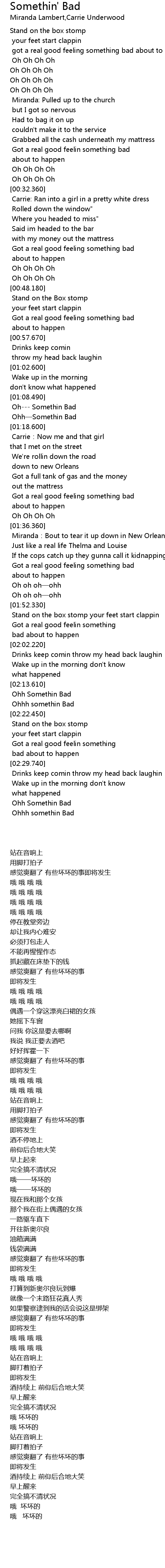 | [01:15.020] | Ohh—Somethin Bad |