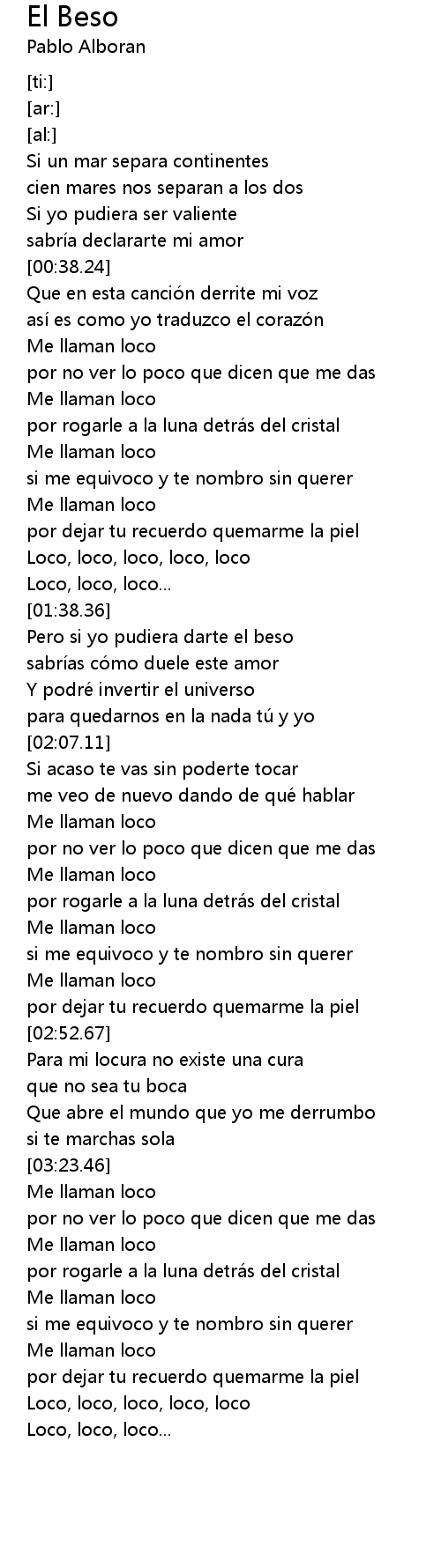 | [03:53.23] | Loco, loco, loco, loco, loco |