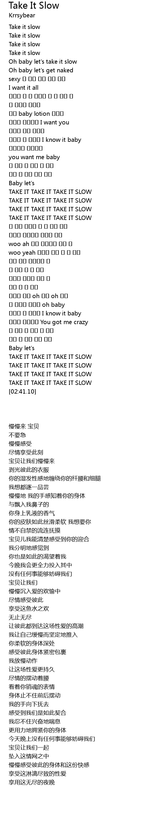 | [01:19.46] | TAKE IT TAKE IT TAKE IT SLOW |