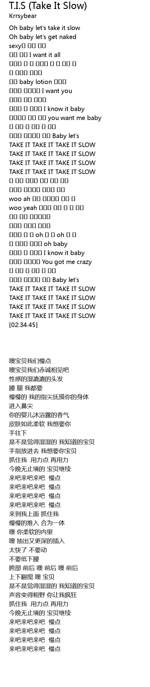 | [01:17.08] | TAKE IT TAKE IT TAKE IT SLOW |