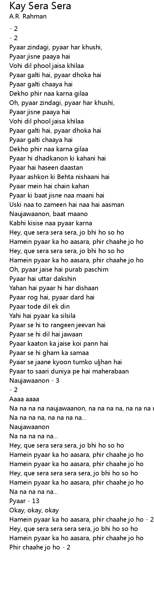 Hey, que sera sera sera sera, jo bhi ho so ho |