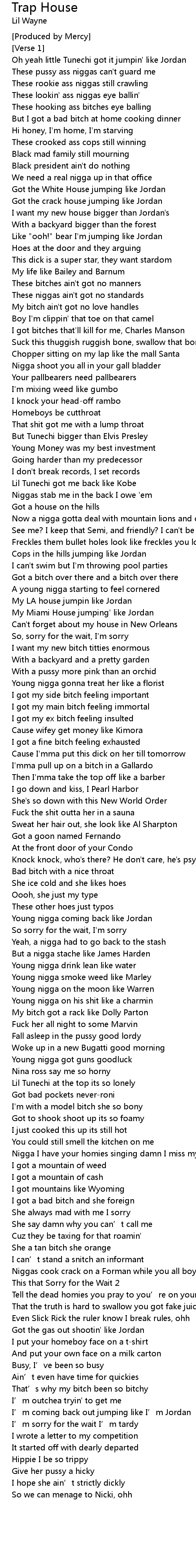 | Oh yeah little Tunechi got it jumpin' like Jordan | |