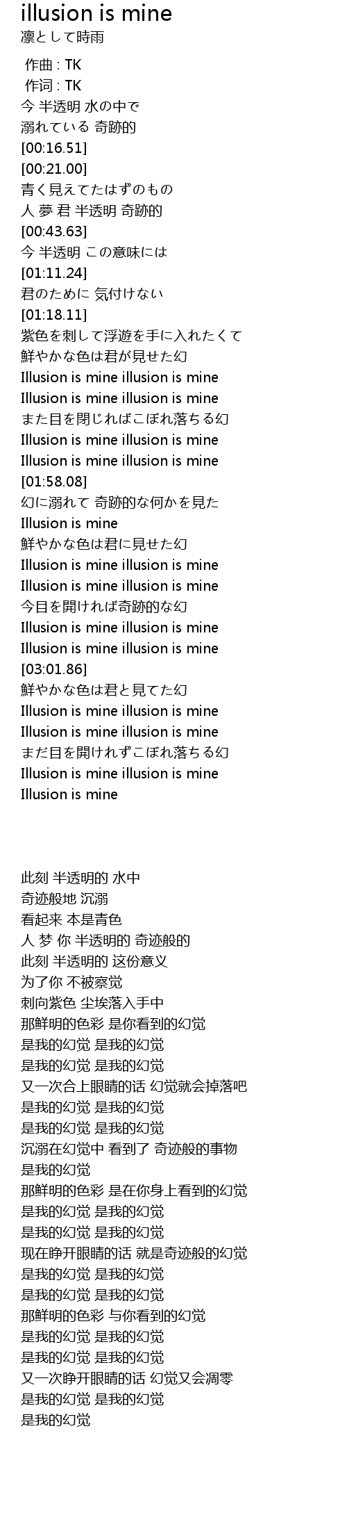 | [01:51.11] | Illusion is mine illusion is mine |