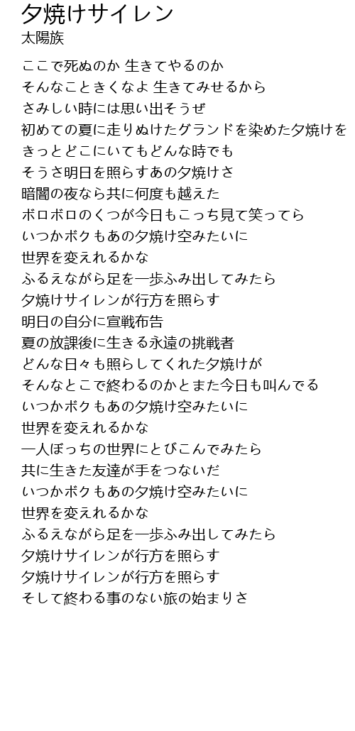 | 初めての夏に走りぬけたグランドを染めた夕焼けを | |