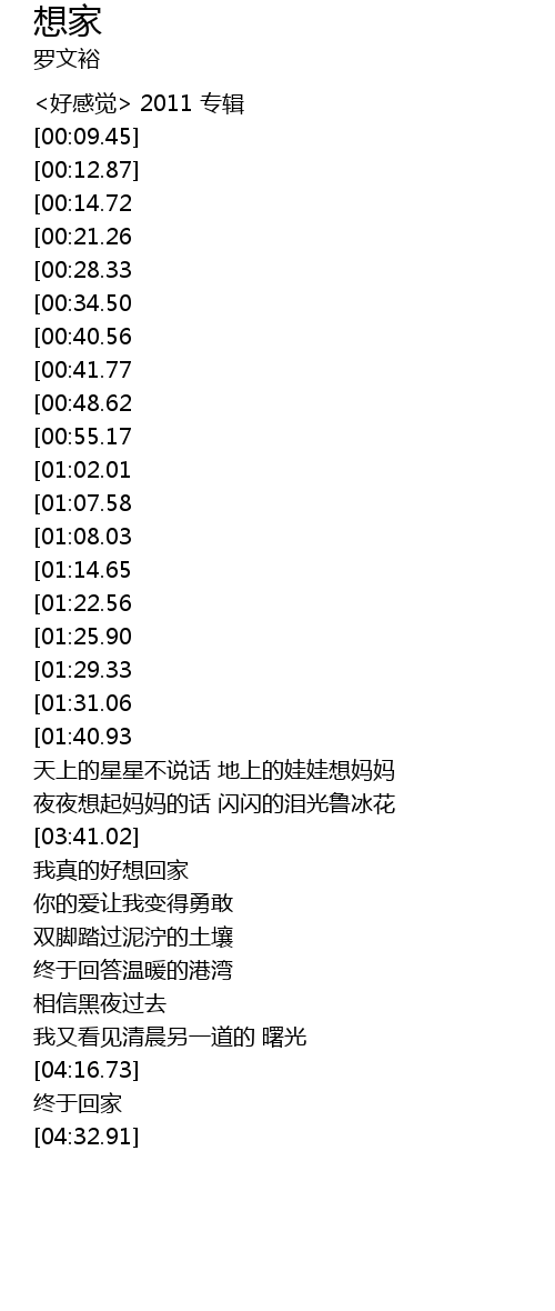 | [02:43.18][01:08.03] | 我真的好想回家 |