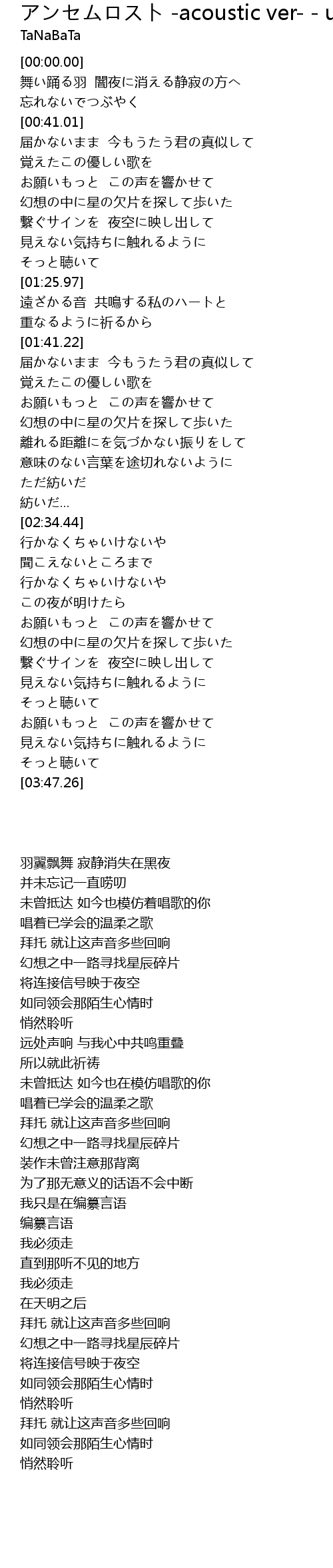 | [00:44.29] | 届かないまま 今もうたう君の真似して |
