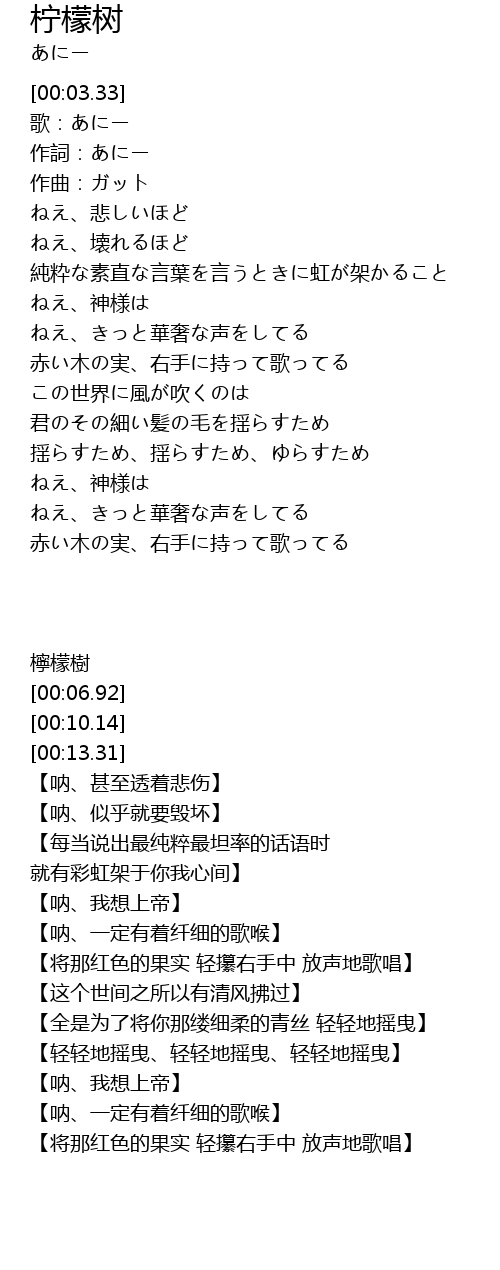 | [01:01.15] | 赤い木の実、右手に持って歌ってる |