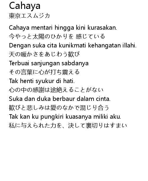 | Cahaya mentari hingga kini kurasakan. | |