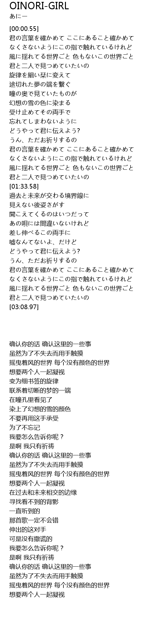 | [02:49.44] | なくさないようにこの指で触れているけれど |