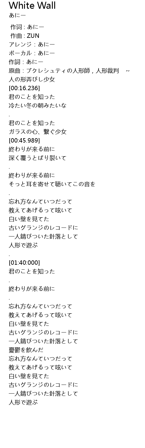 | [00:40.973] | ガラスの心、繋ぐ少女 |