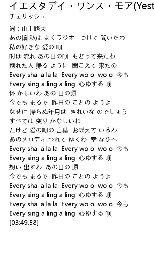 | [03:04.18] | Every sha la la la Every wo o wo o jīn |