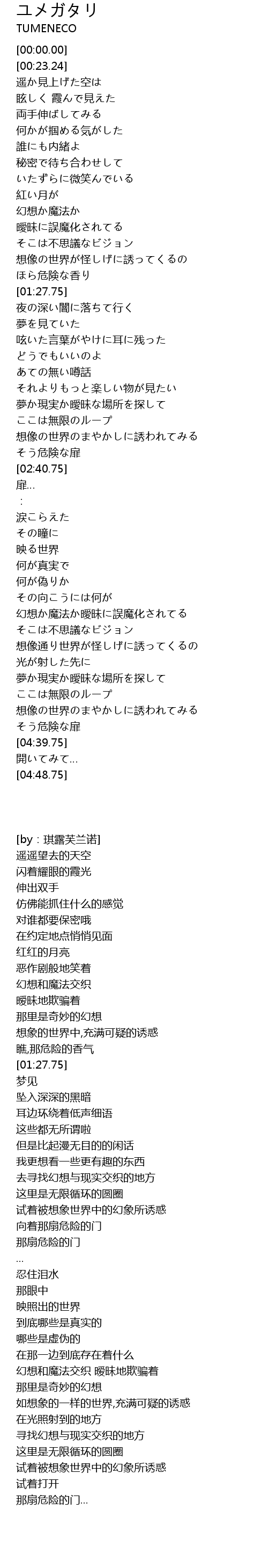 | [04:12.75] | 夢か現実か曖昧な場所を探して |