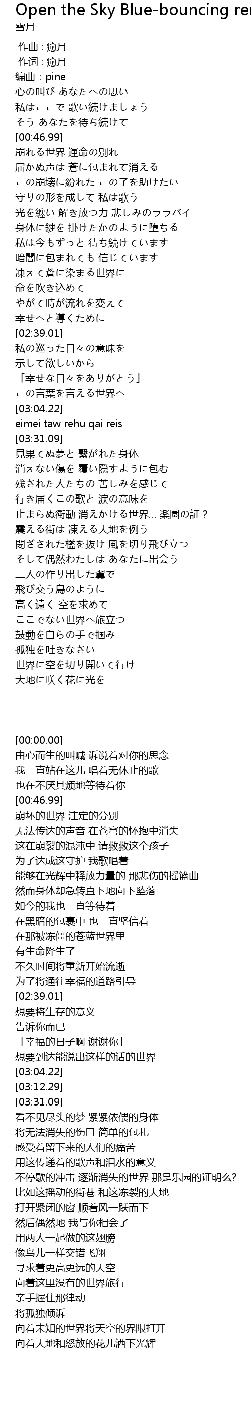 | [00:00.00] | 编曲:pine |