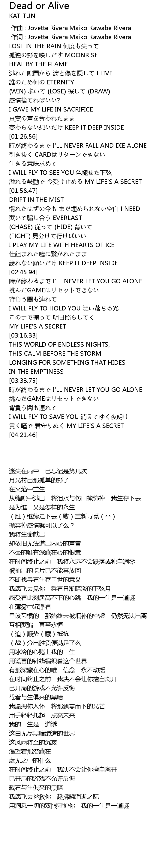 | [04:13.39] | 貫く瞳で 君守りぬく MY LIFE'S A SECRET |