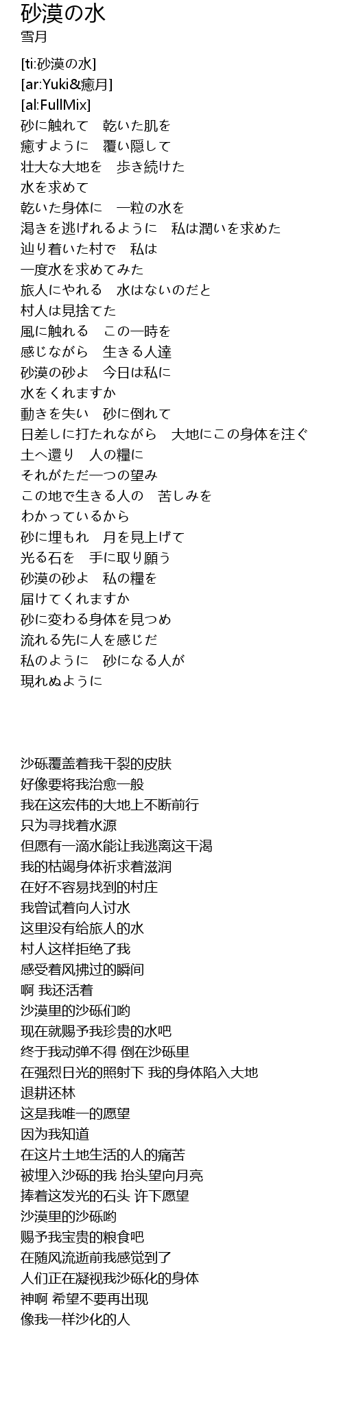 | [00:53.61] | 乾いた身体に 一粒の水を |