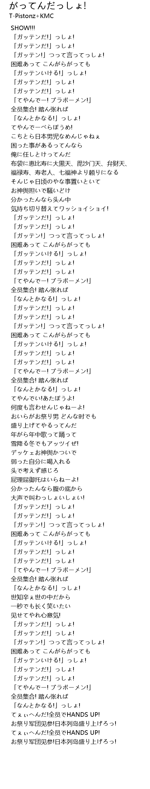 | [01:53.838] | 「ガッテンいける!」っしょ! |