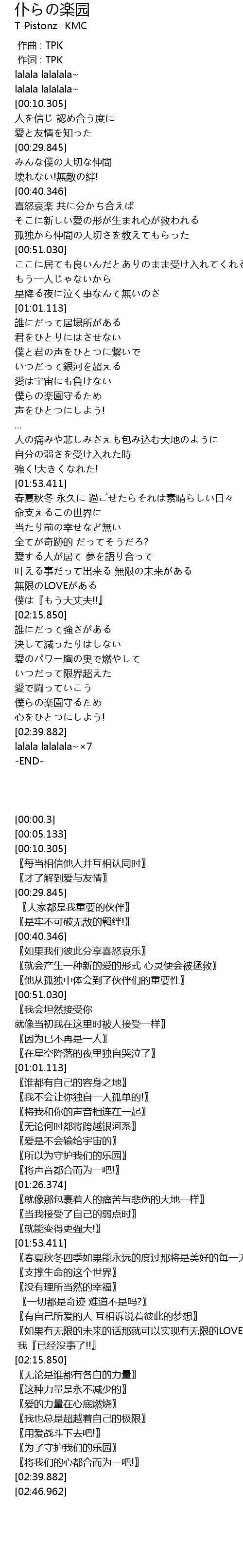 | [02:32.046] | 僕らの楽園守るため |