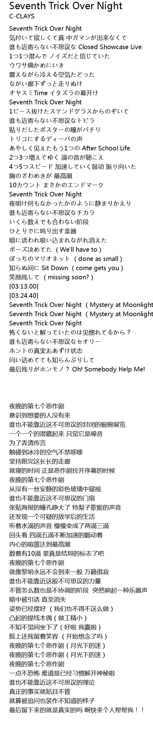 | [03:33.60] | Seventh Trick Over Night (Mystery at Moonlight...) |