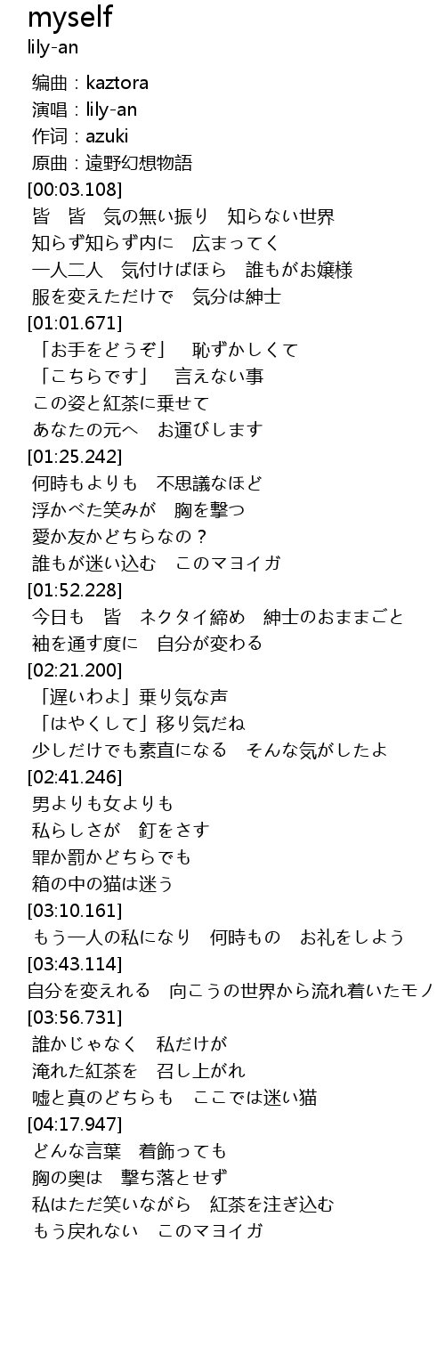 | [04:03.131] | 淹れた紅茶を 召し上がれ |