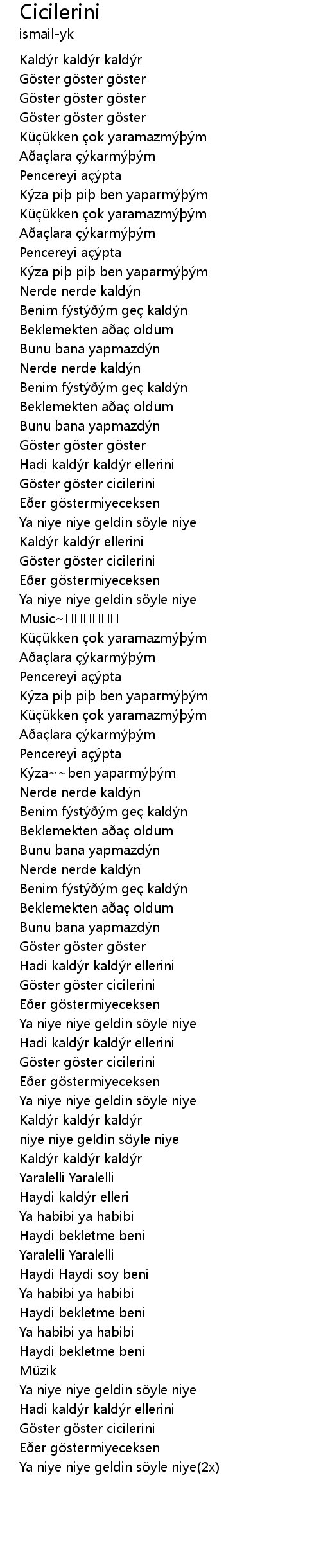 | [00:35.10] | Küü kken ok yaramazm m |