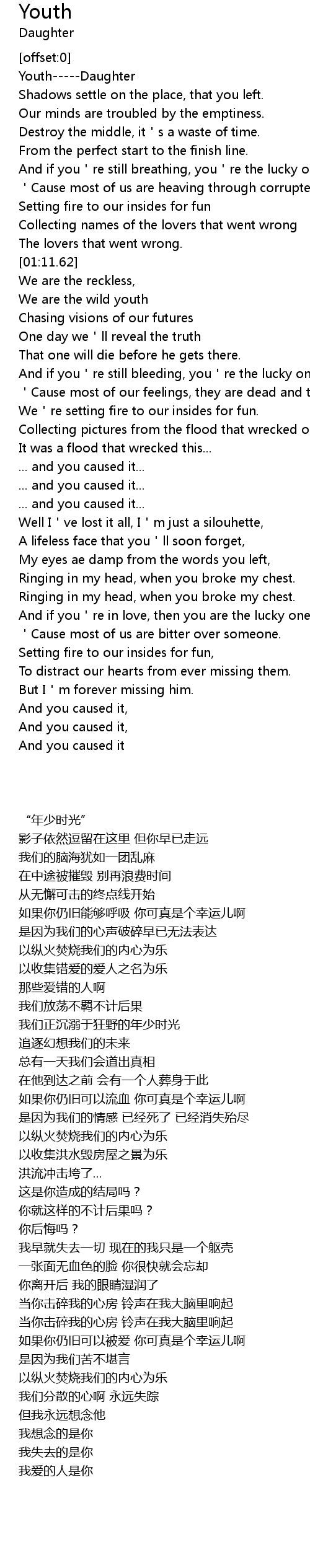 | [00:05.25] | Youth-----Daughter |