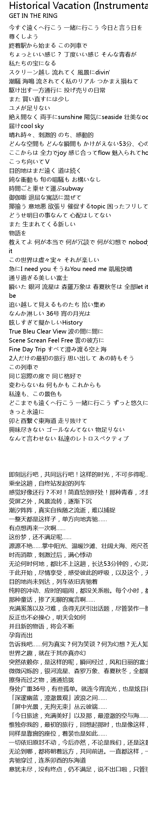 | Song | Historical Vacation (Instrumental) |