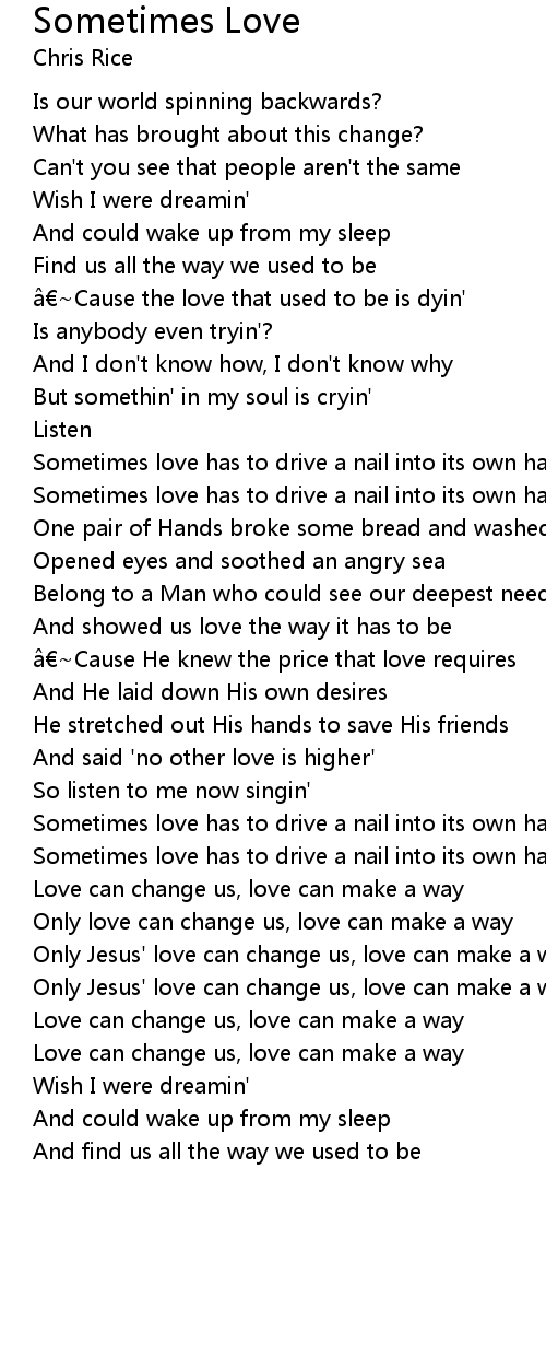 | Love can change us, love can make a way | |