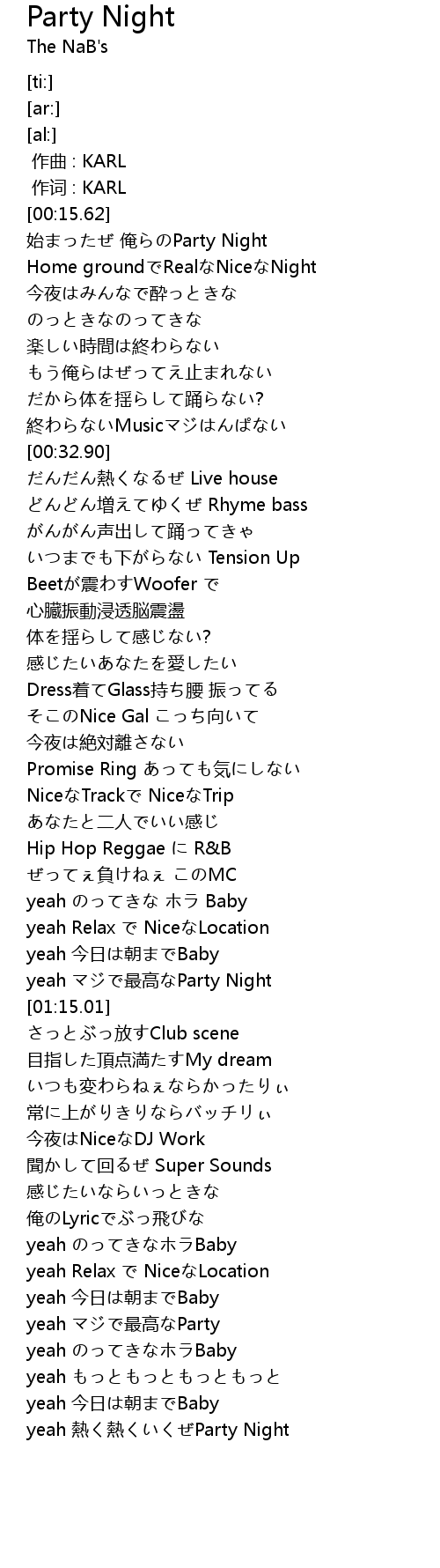 | [02:38.54] | yeah 熱く熱くいくぜParty Night |