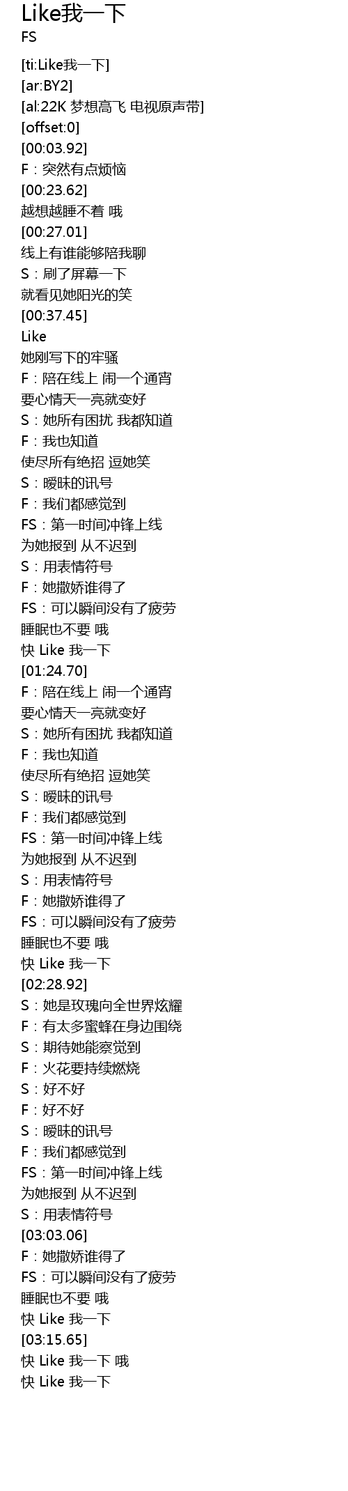 | [03:22.33] | 快 Like 我一下 |