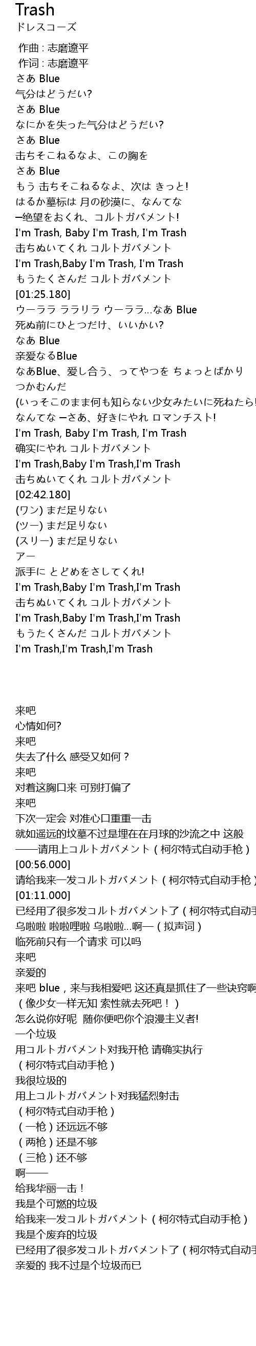 | [03:58.000] | I'm Trash,I'm Trash,I'm Trash |