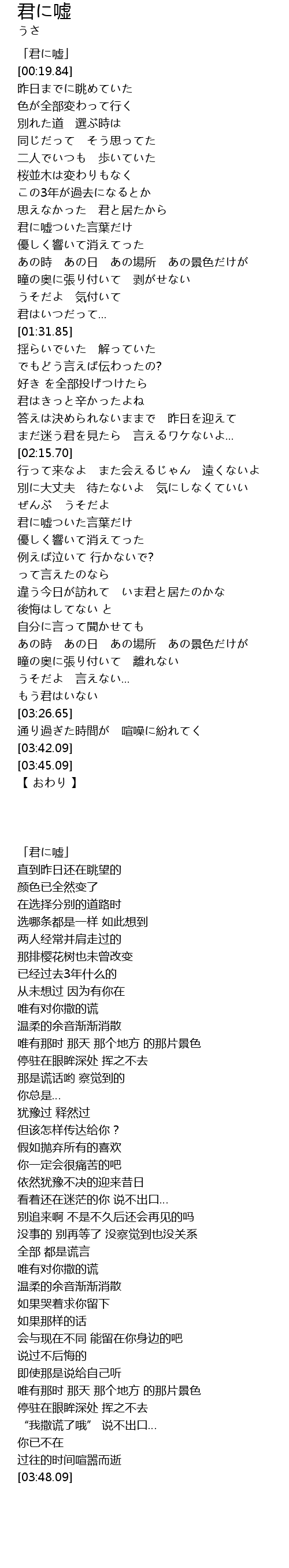 | [00:01.84] | 「君に嘘」 |