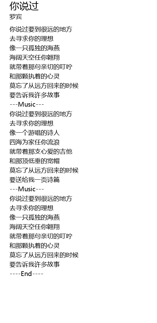 | [01:33.14] | 你说过要到很远的地方 |