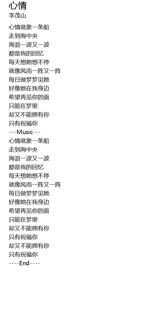 | [01:29.00] | zhǐ yǒu zhù fú nǐ |