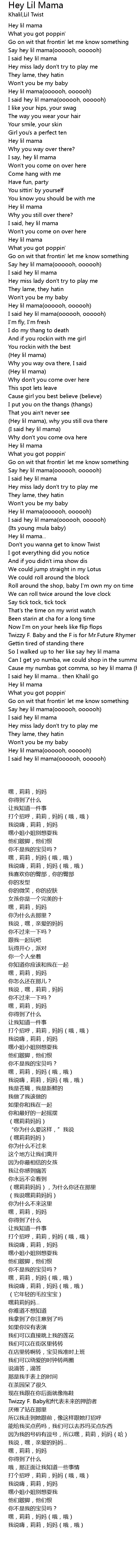 | [02:49.104] | Hey lil mama(oooooh, oooooh) |
