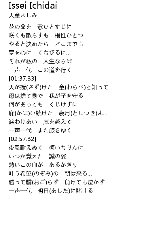 Issei Ichidai Lyrics