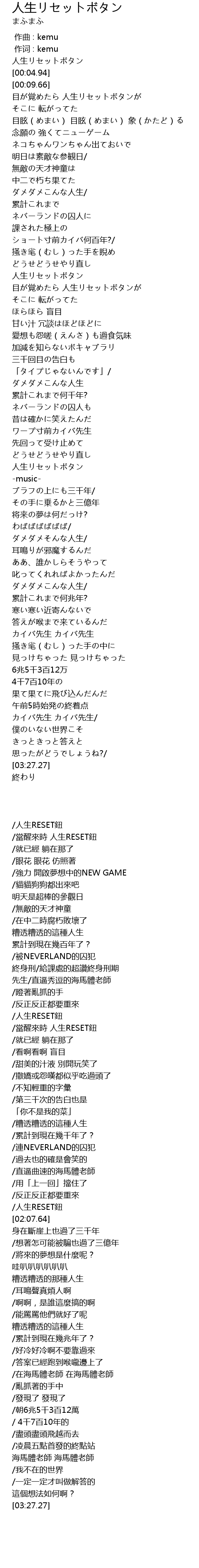 | [00:19.14] | 目が覚めたら 人生リセットボタンが |